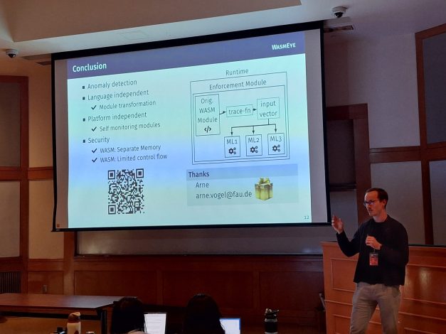 Das erste Papier zeigt, wie Anomalieerkennung in WebAssembly-Module in einer Source-to-Source-Modifizierung des Moduls ohne Quelltextzugriff hinzugefügt werden kann.